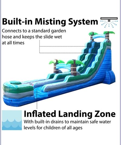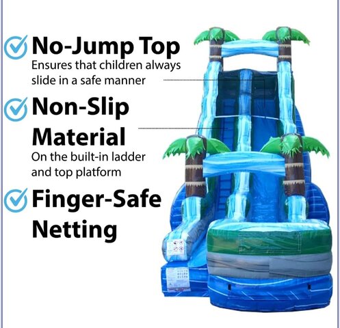 Introducing the 22ft Blue Lagoon– the ultimate addition to any event! Slide into fun with this towering inflatable that promises hours of entertainment for kids and adults alike. Perfect for birthday parties, corporate events, school functions, and community gatherings, the Blue Lagoon features a vibrant blue design that stands out and captures the excitement of summer. With its impressive 22-foot height, this inflatable offers thrilling slides and splash zones that are sure to be the highlight of your event. Safety is our top priority, and the Blue Lagoon is crafted from high-quality, durable materials, ensuring a safe and enjoyable experience for all guests. Make your next event unforgettable with the 22ft Blue Lagoon Inflatable – where adventure meets excitement!