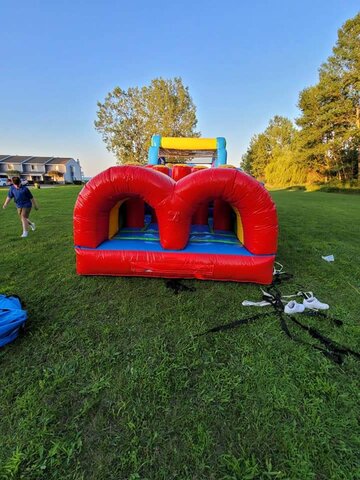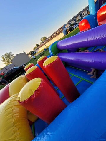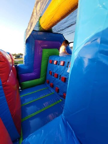 Check out our 40 ft Raceway obstacle! After getting through 3 parts of the course you climb the ladder for the slide and finish with your last part. Lets see who is the fastest at your party!!